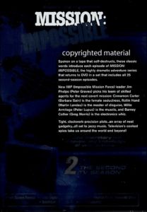 Spoken on a tape that self-destructs, these classic words introduce each episode of Mission: Impossible, the highly dramatic adventure series that returns to DVD in a set that includes all 25 second-season episodes. New IMF (Impossible Mission Force) leader Jim Phelps (Peter Graves) picks his team of skilled agents for the next covert mission: Cinnamon Carter (Barbara Bain) is the female seductress, Rollin Hand (Martin Landau) is the master of disguise, Willie Armitage (Peter Lupus) is the muscle, and Barney Collier (Greg Morris) is the electronics whiz. Tight, clockwork-precision plots... an array of neat gadgetry... all set to jazzy music. Television's coolest spies take us around the world and beyond! |