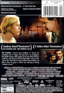 The Cooler is Bernie Lootz (William H. Macy), the unluckiest man in Vegas. His bad luck is so contagious that Shelly Kaplow (Alec Baldwin), the last of the old-time mobsters, uses Bernie to kill the high rollers' action at his casino. but when Bernie meets Natalie (Maria Bello) and falls in love, he gives a whole new meaning to being "unlucky in love". |
