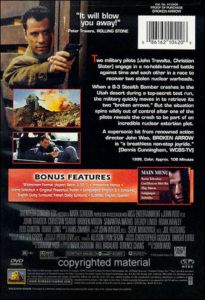 | Two military pilots (John Travolta, Christian Slater) engage in a no-holds-barred battle against time and each other in a race to recover two stolen nuclear warheads. A supersonic hit from renowned action director John Woo, Broken Arrow is "a breathless non-stop joyride." |