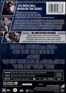 Director, Editor and Motion Control Supervisor Commentary Ride With The Angels: Making Blue Thunder multi-part featurette "The Special": Building Blue Thunder: Making-of-the helicopter 1983 Promotional Featurette Storyboard Galleries Original Theatrical Trailer |