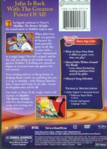 | Jafar comes for revenge on Aladdin, using a foolish thief and Iago's trechery to find away back into power. |