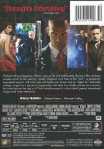 | The best-selling videogame, Hitman, roars to life with both barrels blazing in this hardcore action-thriller starring Timothy Olyphant (Live Free Or Die Hard). A genetically engineered assassin with killer style and deadly aim, known only as "Agent 47", eliminates strategic targets for a top-secret organization. But when he's double-crossed on a mission, the hunter becomes the prey as 47 finds himself ensnared in a life-or-death game of international intrigue and violent retribution. |
