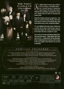 | Available together for the first time on DVD, it's all three volumes of The Addams Family - plus, a haunted houseful of spooktacular special features like Theme Song Karaoke, Tombstone Trivia and hilarious commentaries by cast and crew, including Thing and Cousin Itt discussing their favorite scenes. Volume One introduces television's creepiest clan - they really are a scream! Join Gomez, Morticia, Uncle Fester, Lurch, Cousin Itt, and the rest of the ghoulish gang as they wreak hilarious havoc on their unsuspecting neighors. TV's most frightfully funny family returns in Volume Two as Gomez runs for mayor, Lurch becomes a pop star, Fester turns Pugsley into a chimp, and Cousin Itt loses his hair. There's lots more, so prepare for a scare! Love is in the air in the drop-dead hilarious Volume Three, and it seems that everyone - Pugsley, Ophelia, Uncle Fester, and even Lurch - is being bitten by the bug! Gomez, meanwhile, is burglarizing houses in his sleep, and it's curtains for the new neighbors when Morticia tries her hand at decorating! |