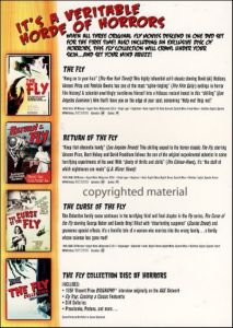 The Fly Collection Disc of Horrors 1997 Vincent Price Biography interview Fly Trap: Catching a Classic Featurette Still Galleries Pressbooks, Posters and more... |