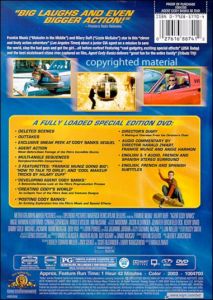 Deleted Scenes Outtakes Exclusive Sneak Peek at Cody Banks Sequel Agent Action - Never-before-seen Footage of the Film's Incredible Stunts Multi-Angle Sequences - Storyboard-to-Film Comparisons 3 Featurettes: "Frankie Muniz Going Big"; "How to Talk to Girls"; and "Cool Makeup Tricks by Hilary Duff" "Developing Agent Cody Banks" - A Behind-the-Scenes Look at the Film's Preproduction Process "Creating Cody's World" - An In Depth Tour of the Film's Sets and Costume Designs "Posting Cody Banks" - An Exciting Exploration Into the Film's Music and Special Effects Director's Diary - A Making-of Overview From the Director's Chair Audio Commentary by Director Harald Zwart, Frankie Muniz and Angie Harmon