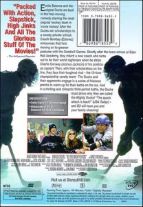 Emilio Estevez and the original Ducks are back in this fast-moving comedy starring the most popular hockey team in movie history! After the Ducks win scholarships to a snooty private school, Coach Bombay (Estevez) announces that he's moving on to greener pastures with the Goodwill Games. Shortly after the team arrives at Eden Hall Academy, they inherit a new coach who turns out to be their worst nightmare when he strips Charlie Conway (Joshua Jackson) of his position as captain! Then, with their scholarships on the line, they face their toughest rival -- the 10-time championship varsity team! The Ducks and their opponents engage in a series of hilarious pranks to warm up for their battle on the ice. And in a thrilling and climactic third-period battle, the Ducks must prove why they are called the Mighty Ducks! "The quack attack is back!" (USA Today) - and D3 will have you and your family cheering! |