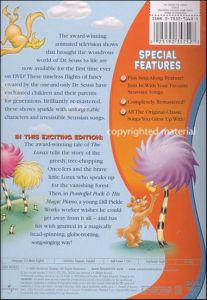 In this exciting edition: The award-winning tale of The Lorax tells the story of the greedy, tree-chopping Once-lers and the brave little Lorax who speaks up for the vanishing forest. Then in Pontoffel Pock & His Magic Piano, a young Dill Pickle Works worker wishes he could get away from it all-and has his wish granted in a magically head-spinning, globe-trotting song-singing way! |