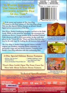 All the power and majesty of The Lion King return in this final volume of The Lion King trilogy. This two-disc Special features an all-new vibrant digital picture presentation of the film.
