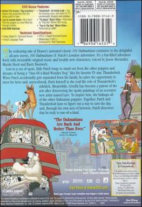 The endearing tale of Disney's animated classic 101 Dalmatians continues in the delightful, all-new movie, 101 Dalmatians II: Patch's London Adventure. It's a fun-filled adventure fresh with irresistible original music and lovable new characters, voiced by Jason Alexander, Martin Short and Barry Bostwick.