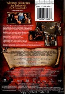 | From producer Jerry Bruckheimer (Pearl Harbor) comes Pirates Of The Caribbean: The Curse Of The Black Pearl, the thrilling, high-seas adventure with a mysterious twist. The roguish yet charming Captain Jack Sparrow's (Johnny Depp) idyllic pirate life capsizes after his nemesis, the wily Captain Barbossa (Geoffrey Rush), steals his ship the Black Pearl, and later attacks the town of Port Royal, kidnapping the governor's beautiful daughter Elizabeth (Keira Knightley). In a gallant attempt to rescue her and recapture the Black Pearl, Elizabeth's childhood friend Will Turner (Orlando Bloom) joins forces with Jack. What Will doesn't know is that a cursed treasure has doomed Barbossa and his crew to live forever as the undead. Rich in suspense-filled adventure, sword-clashing action, mystery, humor, unforgettable characters and never-before-seen special effects, Pirates is a must-have epic on the grandest scale ever. |