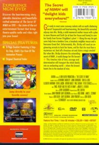 Along the way she gets some help from a lovelorn Crow, a busybody neighbor mouse and a fearsome Great Owl. Unfortunately, Mrs. Brisby will need an engineering miracle to hoist her home, and for that she must face a mysterious rat, fend off a ferocious cat and claim a magic amulet! But when Mrs. Brisby discovers the astounding secret of NIMH...it could change her life forever!