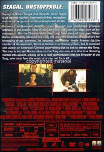 Renowned archaeologist Robert Burns (Seagal) has unearthed precious artifacts in the ancient ruins of eastern China, with plans to ship them off for resetoration. But the Chinese Mafia, the Tong, have plans of their own. When Burns accidentally discovers the Tong are using the artifacts as containers for smuggling drugs overseas, he becomes marked for death. Framed for the murder of his assistant, Burns is thrown in a Chinese prison, but is released and used in an American/Chinese government plot as bait to attract the Tong. The trap is set and Burns takes on the Tong one man at a time in a blistering martial arts assault, leading up to a final confrontation with the Emperor of the Tong, who must face the wrath of a man out for a kill. |