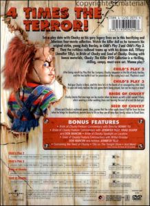 Bride of Chucky Feature Commentary with Director Ronny Yu Bride of Chucky Feature Commentary with Jennifer Tilly, Brad Dourif and Don Mancini Bride of Chucky Spotlight on Location Seed of Chucky Feature Commentary with Writer/ Director Don Mancini and Actress Jennifer Tilly Conceiving the Seed of Chucky Tilly on The Tonight Show And More! |
