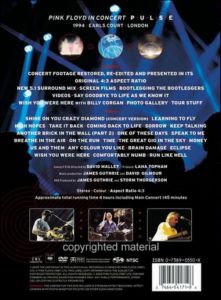 Disc 1 1. Shine On You Crazy Diamond (Concert Version) 2. Learning To Fly 3. High Hopes 4. Take It Back 5. Coming Back To Life 6. Sorrow 7. Keep Talking 8. Another Brick In The Wall (part 2) 9. One of These Days 10.Speak To Me 11.Breathe In The Air 12.On The Run 13.Time 14.The Great Gig In The Sky 15.Money 16.Us And Them 17.Any Colour You Like 18.Brain Damage 19.Eclipse 20.Wish You Were Here 21.Comfortably Numb 22.Run Like Hell And More!