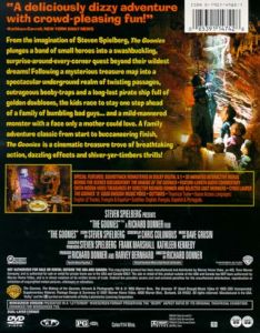 | From the imagination of Steven Spielberg, The Goonies plunges a band of small heroes into a swashbuckling, surprise-around-every-corner quest beyond their wildest dreams! Following a mysterious treasure map into a spectacular underground realm of twisting passages, outrageous booby-traps and a long-lost pirate ship full of golden doubloons, the kids race to stay one step ahead of a family of bumbling bad guys… and a mild-mannered monster with a face only a mother could love. A family adventure classic from start to buccaneering finish, The Goonies is a cinematic treasure trove of breathtaking action, dazzling effects and shiver-yer-timbers thrills! |