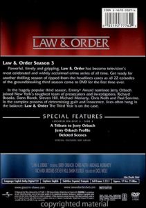 Powerful, timely and gripping, Law & Order has become television's most celebrated and widely acclaimed crime series of all time. Get ready for another thrilling season of ripped-from-the-headlines cases as all 22 episodes of the groundbreaking third season come to DVD for the first time ever.