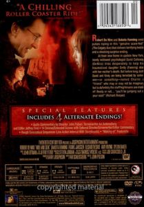 At their new home in upstate New York, newly widowed psychologist David Callaway (DeNiro) tries desperately to help his traumatized daughter Emily (Fanning) deal with her mother's death. But before long, both David and Emily are being terrorized by someone - or something - named Charlie: a "friend" who may or may not be imaginary but is definitely the stuff nightmares are made of! Ready or not... "you'll be jumping out of your seat!" (Richard Roper) |