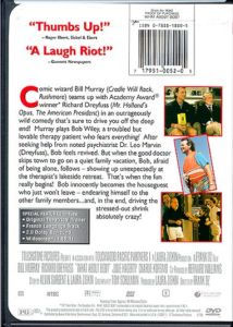 Comic wizard Bill Murray (Cradle Will Rock, Rushmore) teams up with Academy Award winner Richard Dreyfuss (Mr. Holland's Opus, The American President) in an outrageously wild comedy that's sure to drive you off the deep end! Murray plays Bob Wiley, a troubled but lovable therapy patient who fears everything! After receiving help from a noted psychiatrist Dr. Leo Marvin (Dreyfuss), Bob feels revived. But when the doctor skips town to go on a quiet family vacation, Bob, afraid of being alone, follows -- showing up unexpectedly at the therapist's lakeside retreat. That's when the fun really begins! Bob innocently becomes the houseguest who just won't leave -- endearing himself to the other family members…and, in the end, driving the stresses-out shrink absolutely crazy! |