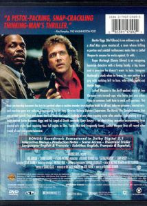 Martin Riggs (Mel Gibson) is no ordinary cop. He's a Mad Max gone maniacal, a man whose killing expertise and suicidal recklessness make him a Lethal Weapon to anyone he works against. Or with. Roger Murtaugh (Danny Glover) is an easygoing homicide detective with a loving family, a big house and a pension he doesn't want to lose. Imagine Murtaugh's shock when he learns his new partner is a guy with nothing left to lose: wild-eyed, burnt-out Martin Riggs. Lethal Weapon is the thrill-packed story of two Vietnam-vets-turned-cops who have just one other thing in common: both hate to work with partners. But their partnership becomes the key to survival when a routine murder investigation leads to all-out, take-no-prisoners, martial-arts-and-machine-guns war with an international heroin ring. |