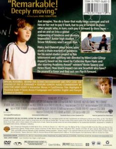 Behind-The-Scenes Documentary HBO First Look: The Making Of Pay It Forward Feature Length Audio Commentary by Director Mimi Leder Interactive Menus Cast/Director Film Highlights Theatrical Trailer Scene Access